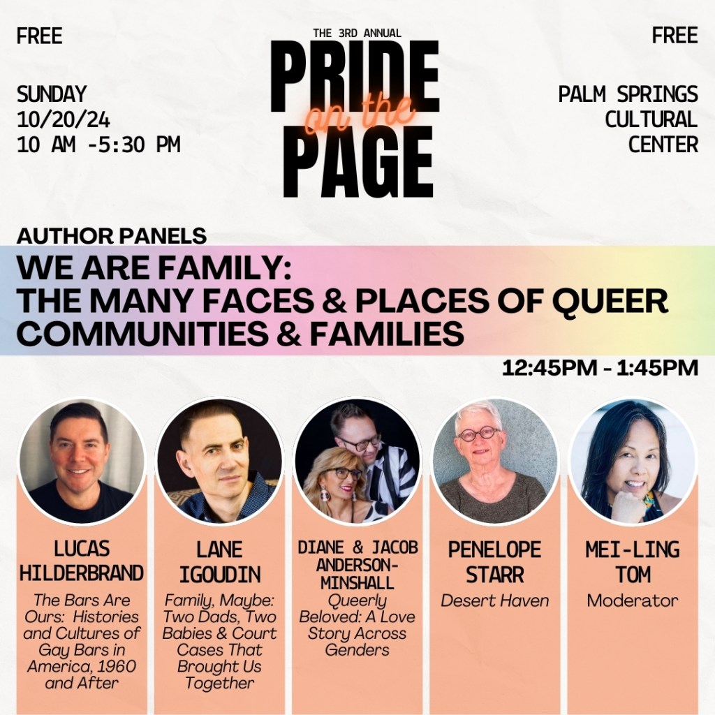 Tour stop #12: an exhilarating day speaking on the “We Are Family” panel at the third annual Pride on the Page in Palm Springs alongside Lucas Hildebrand and Penelope Starr. We shared the stories behind our books, discussed writing about our families and communities, answered the questions from the audience.