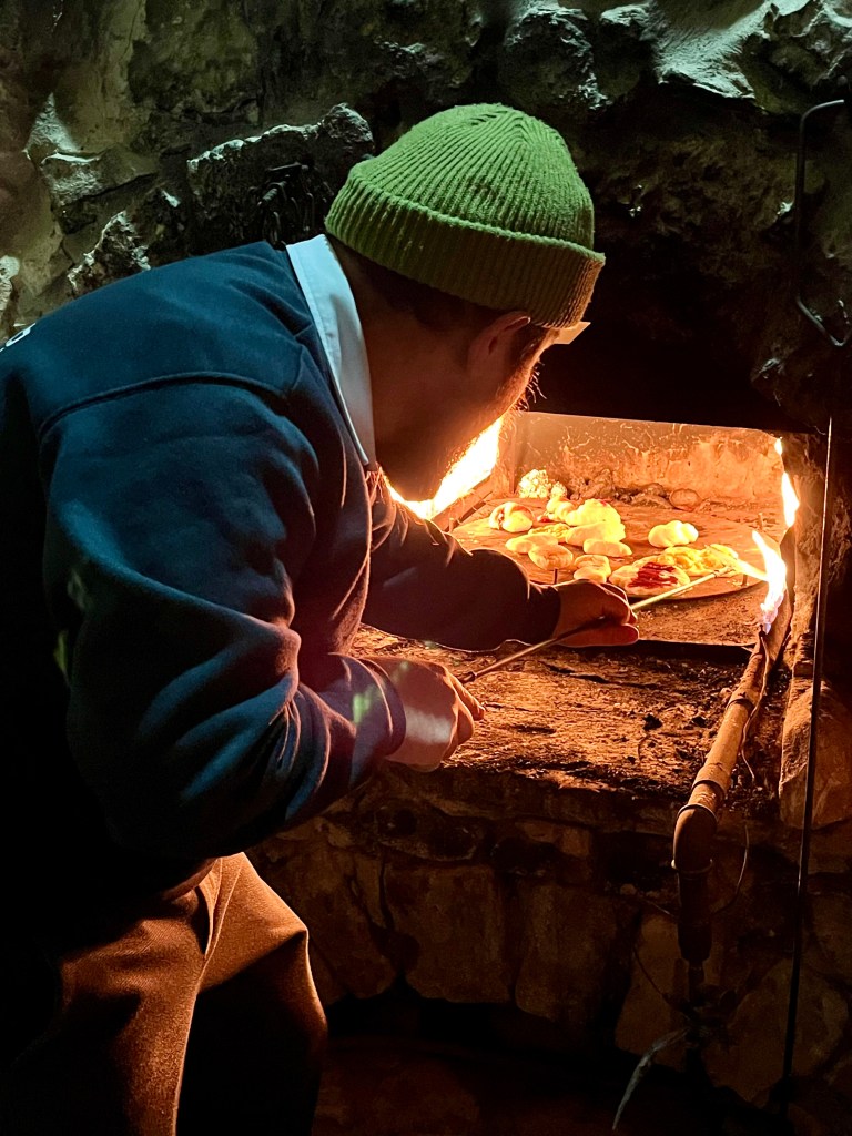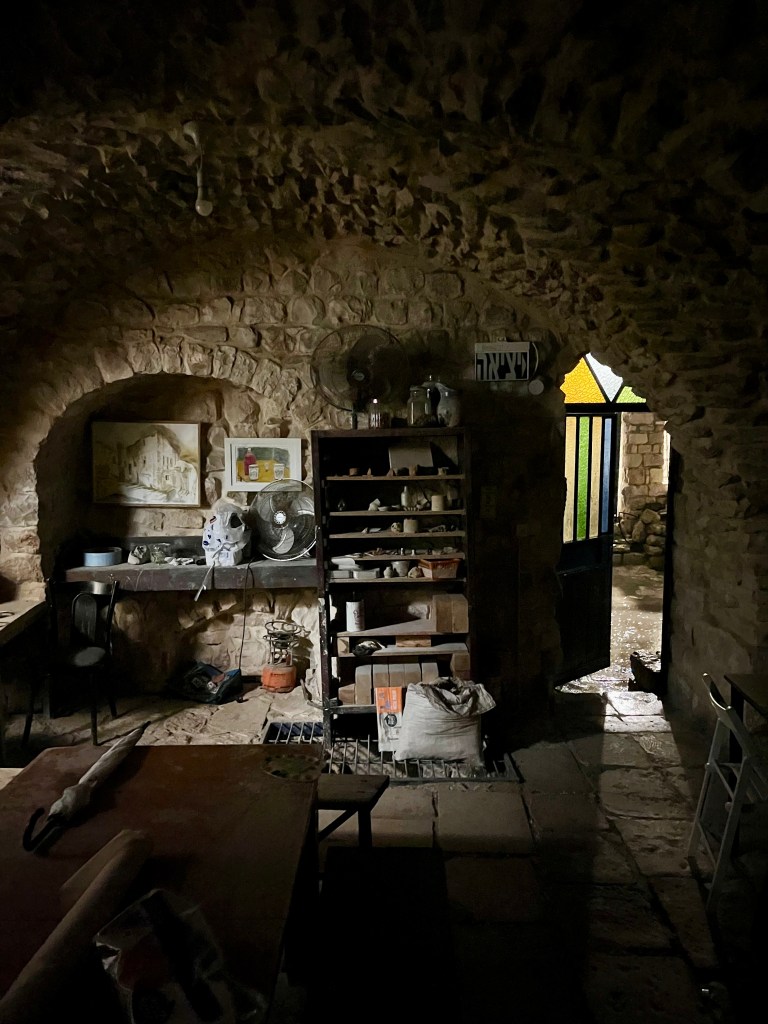 On a weekday night, we made our way through the tunnels to the Beit ha-Kahal as the hail was pounding the doors and windows. In this ancient communal space, we rolled the dough to bake pitas, reliving a century-old experience. People who used the oven would have gone to the same synagogue around the corner as I did earlier that morning. They would have likely left their Shabbat meals in this oven overnight so they wouldn’t have to kindle the fire.