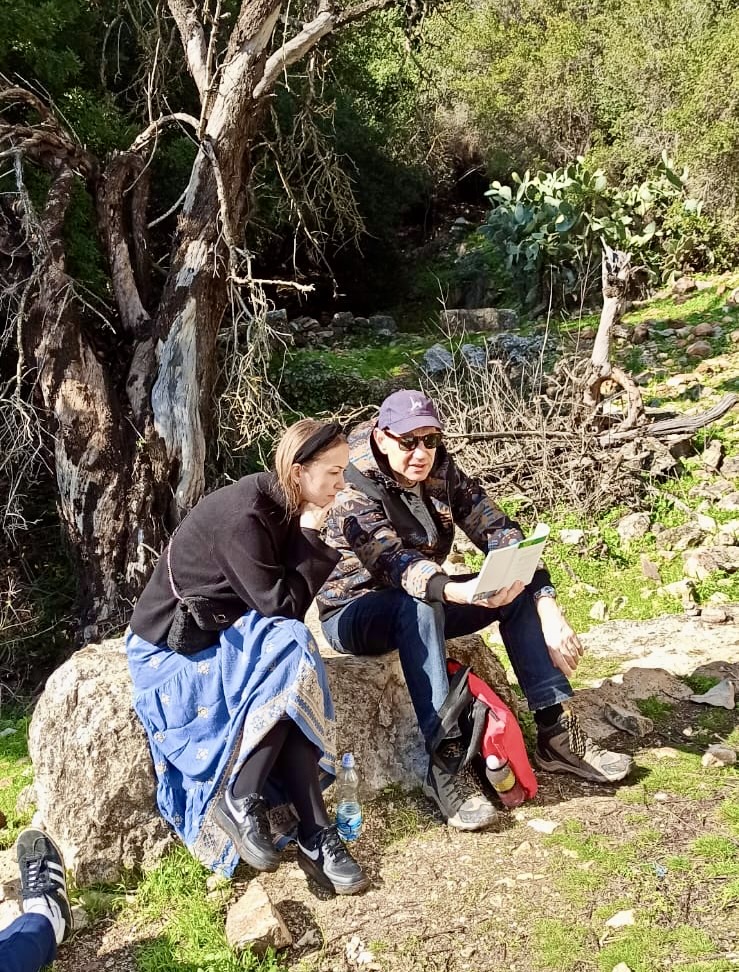 There we had a bit of eco-Torah study by the creek in the shade of sycamores. We were to pick from the printed guide a tree or a plant that grows in the Land of Israel, and discuss what holy writings say about it, the message these species teach us. The point was to connect their wisdom to our personal life missions.
