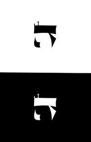 One of Loewenthal’s paintings shows the letter hei (ה) in white against the black background, above another ‘ה’ in black against the white background. (ה) appears twice in G-d’s name. The artist explained that the upper (ה) represents the full, giving love, while the lower (ה) the empty self-love.
