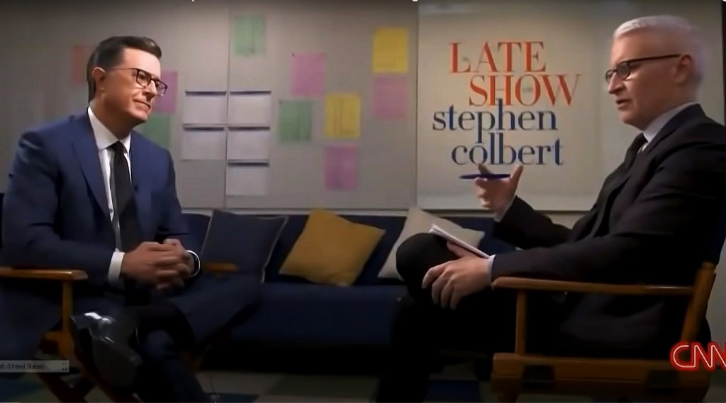The conversation is insightful. To me, it revealed Colbert, usually an acerbic comedian, in an unexpected light.