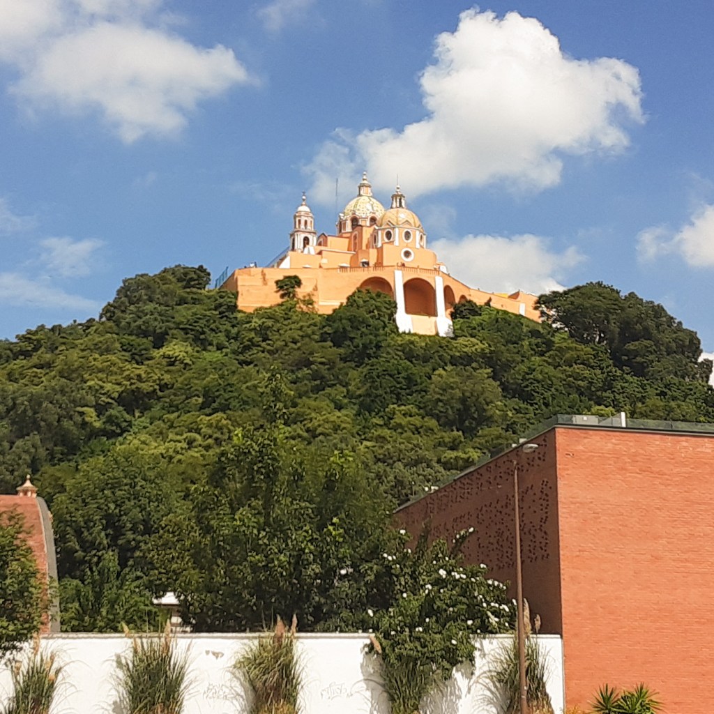 More layers. We are in Cholula, visiting the Sanctuary of the Virgin of Remedies, a beautiful Baroque church high up on a hill, except it’s not a hill.