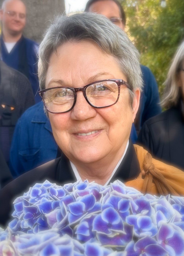 Allow me to share my practice based on what I learned years ago from Sensei Faith-Mind Thoresen (below), a wonderful dharma teacher at Zen Center Los Angeles.