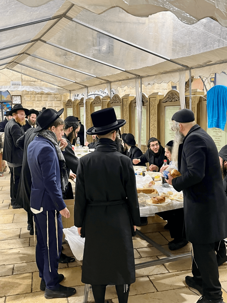 Haredim were passing by in droves. The minyan leader tried to get them to join, “C’mon, gever, just 10 minutes,” but they wouldn’t. This went on for a while, which made me sad to witness such lack of unity at a holy site. Finally, a trio of teenage Chabadniks agreed, and we could start.