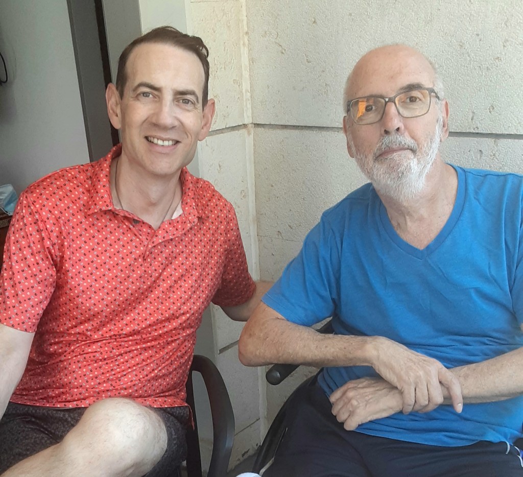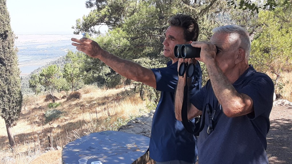 Eitan and his son Gil at the overlook over the Hula Valley from the Naftali Mountains