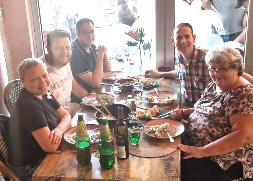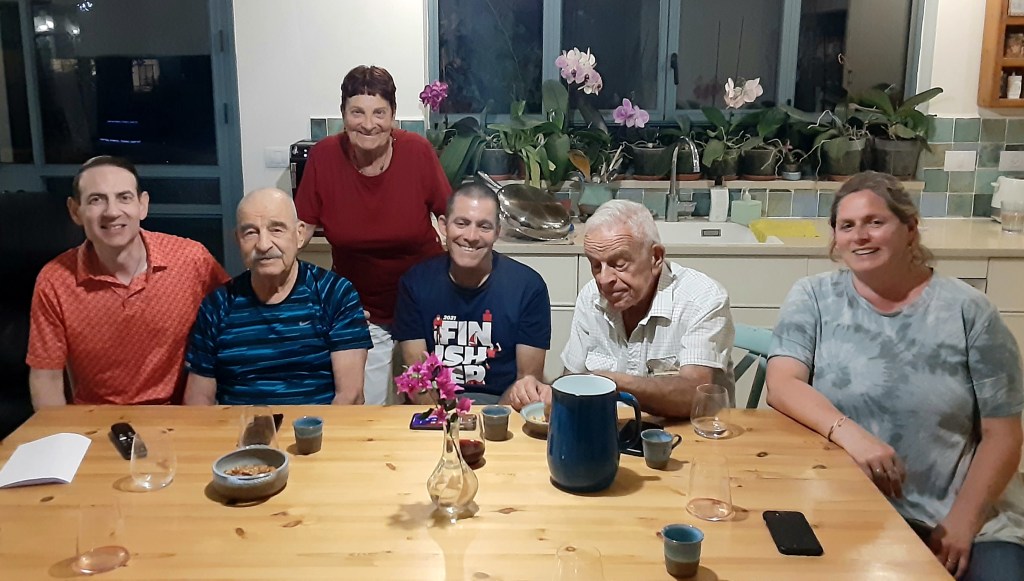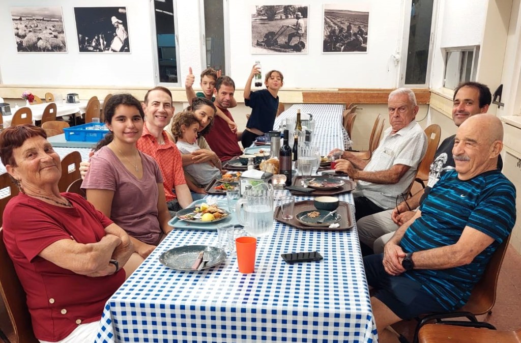 Shabbat dinner at Kibbutz Gadot with Eitan and Eli’s families. Yes, there is a challah and kiddush wine on the table!