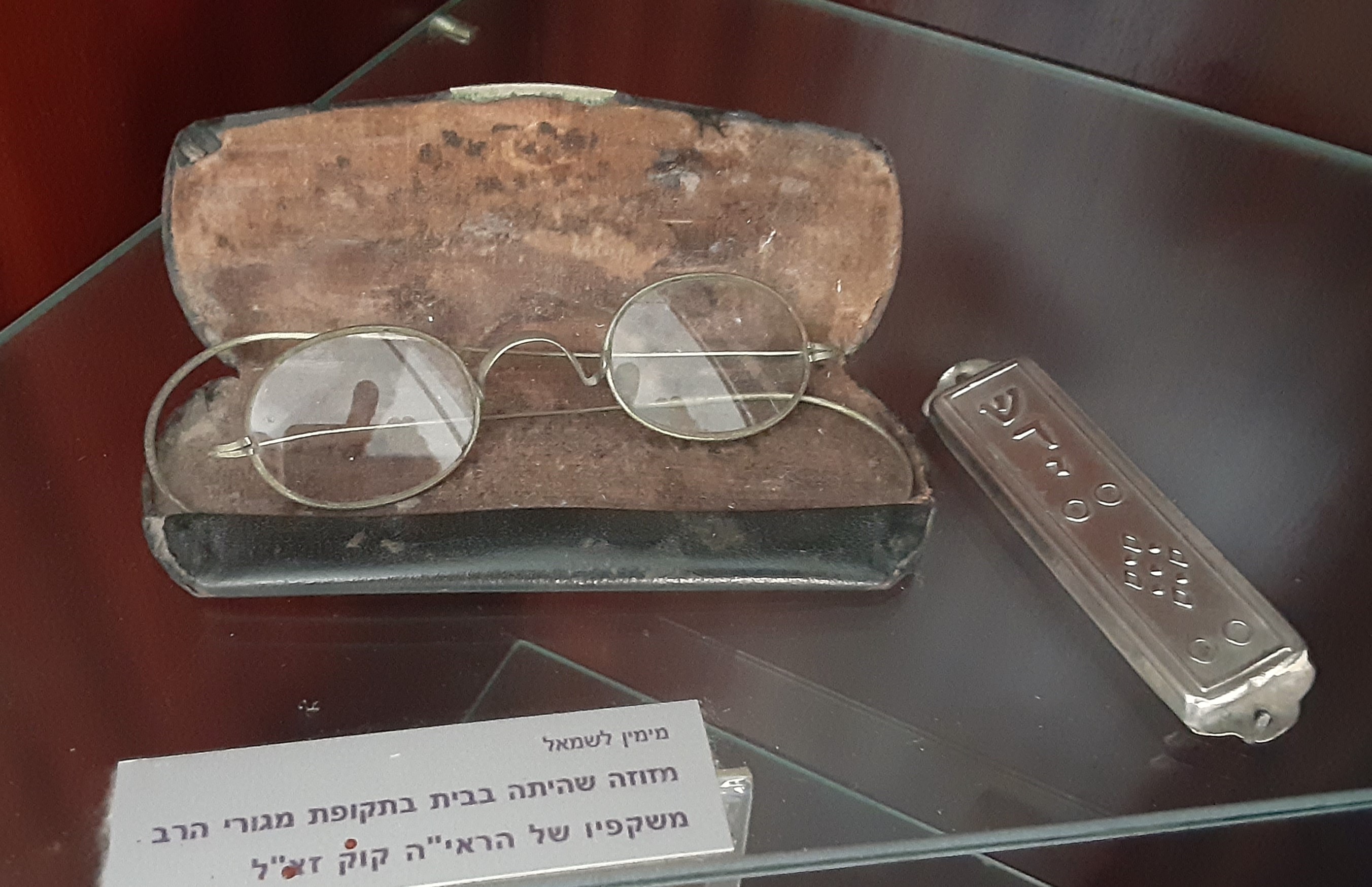 L-R: entrance gate; Rav Kook’s office where he received visitors; his glasses and mezuzah; his office chair and desk; entrance into the house (2nd floor); the on-site synagogue – back in the day and now (still used); standing with the tour guide before the cabinet containing the Torah scrolls (aron ha-kodesh); the dining/study/meeting room: front and back (with the Russian samovar); the Chief Rabbi’s official seals; the office mezuzah. © Lane Igoudin, 2022