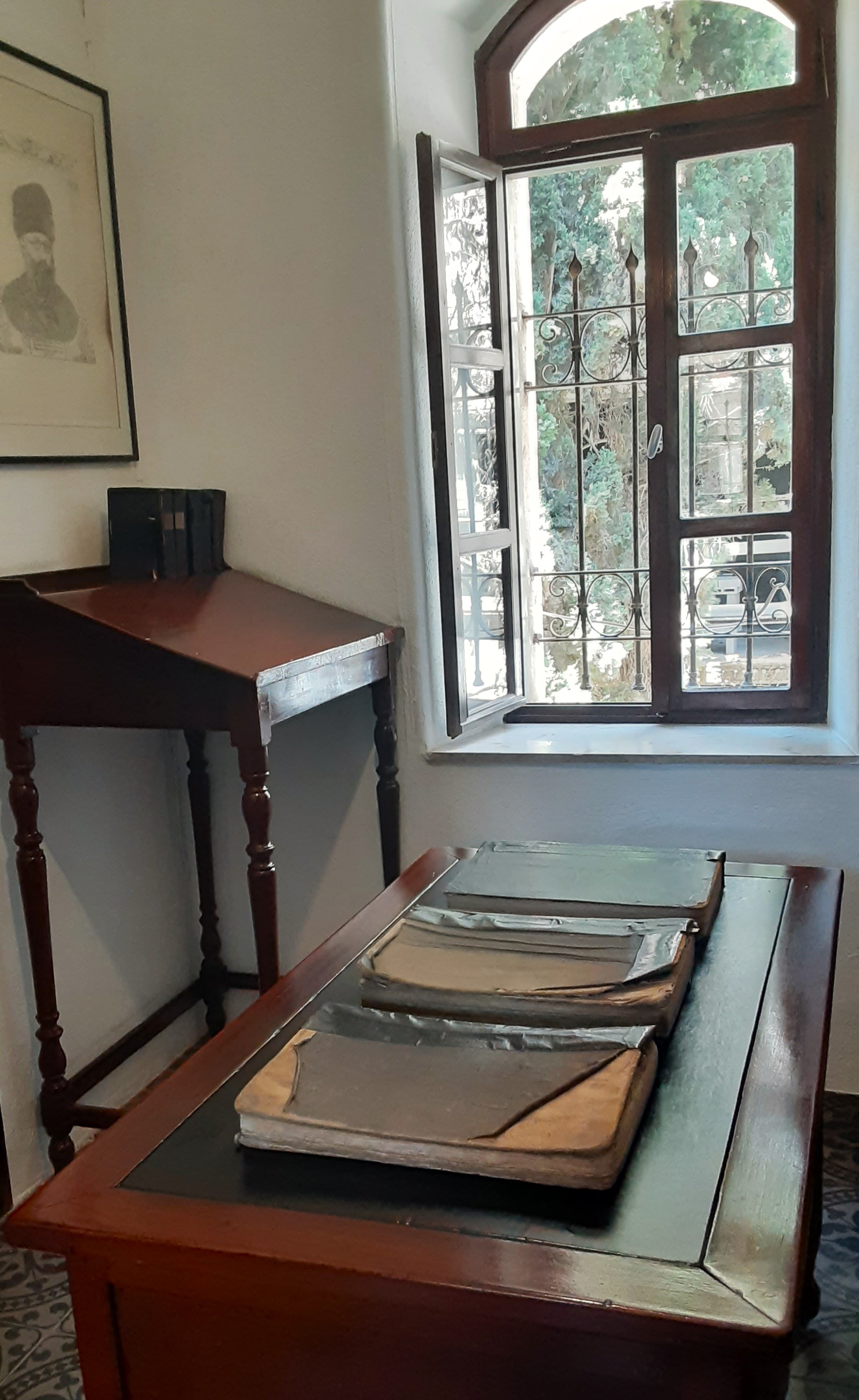 In August 2022, I visited the historical home of Rabbi Abraham Isaac ha-Kohen Kook, the first Chief Rabbi of Palestine and a major 20th-century Jewish mystic, philosopher, and religious leader, known commonly as Rav Kook. This modest 2-story house in Jerusalem’s Beit David neighborhood served as Rav Kook’s office, synagogue, yeshiva, and living quarters. I was lucky to have a personal tour given by a volunteer docent, who told me so much about the house, and the rabbi’s life there. Today it’s a museum (Beit Ha-Rav Kook), but it also hosts religious services and public activities.